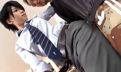 Lustful crossdresser man gets a solid deepthroat BJ performed by dark-haired